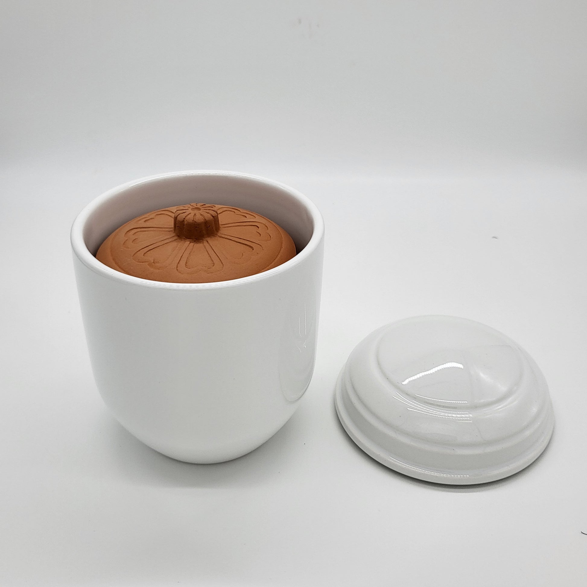 겉함의 미니멀한 테라코타 디자인과 내부의 보호 함이 조화를 이루어 습기를 막아주고 오랜 세월 상태를 유지합니다.